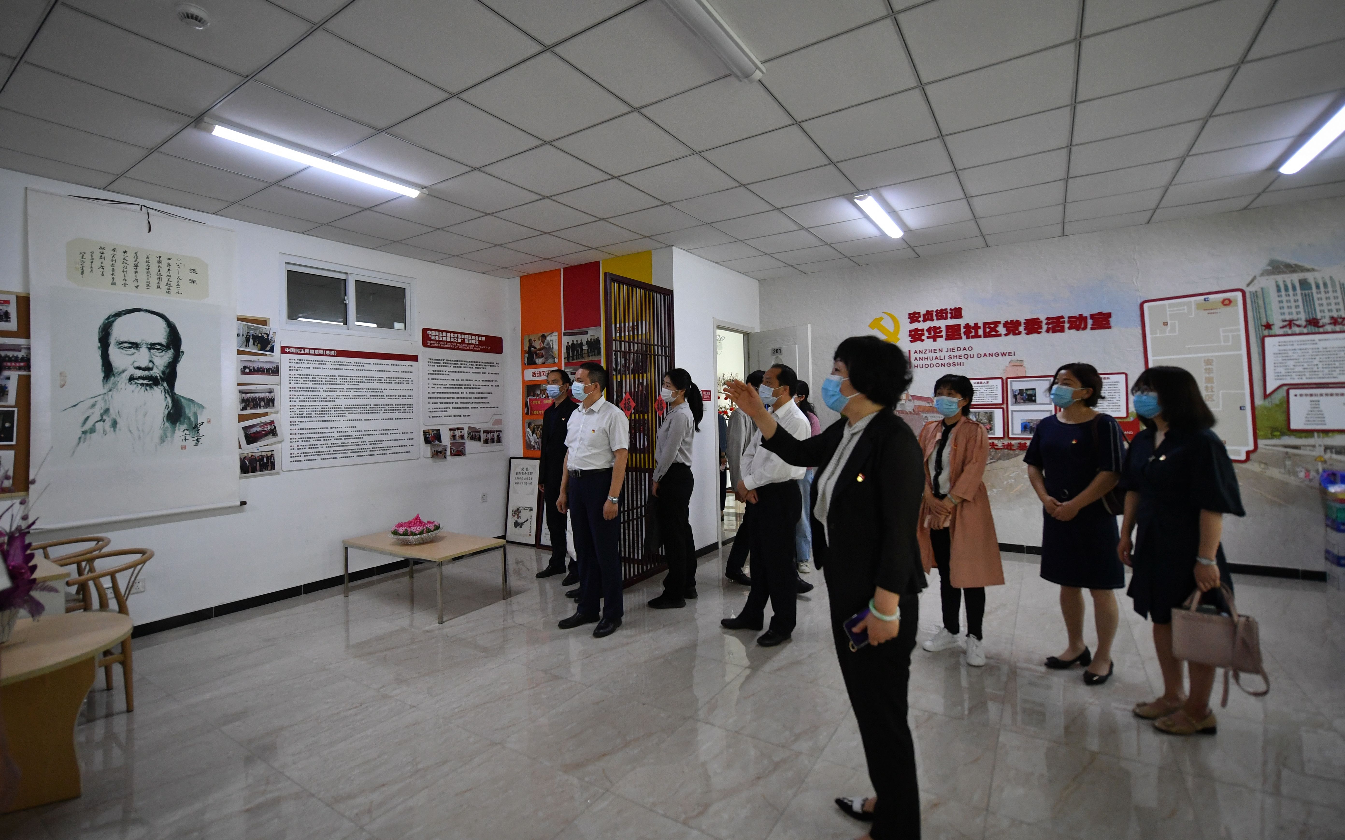 安华里社区党委书记侯兵向参会人员介绍了社区情况以及社区“贞美”楼门微治理工作情况,并带领三地书记到安华里二区8、9号楼实地走访和调研楼门治理工作。