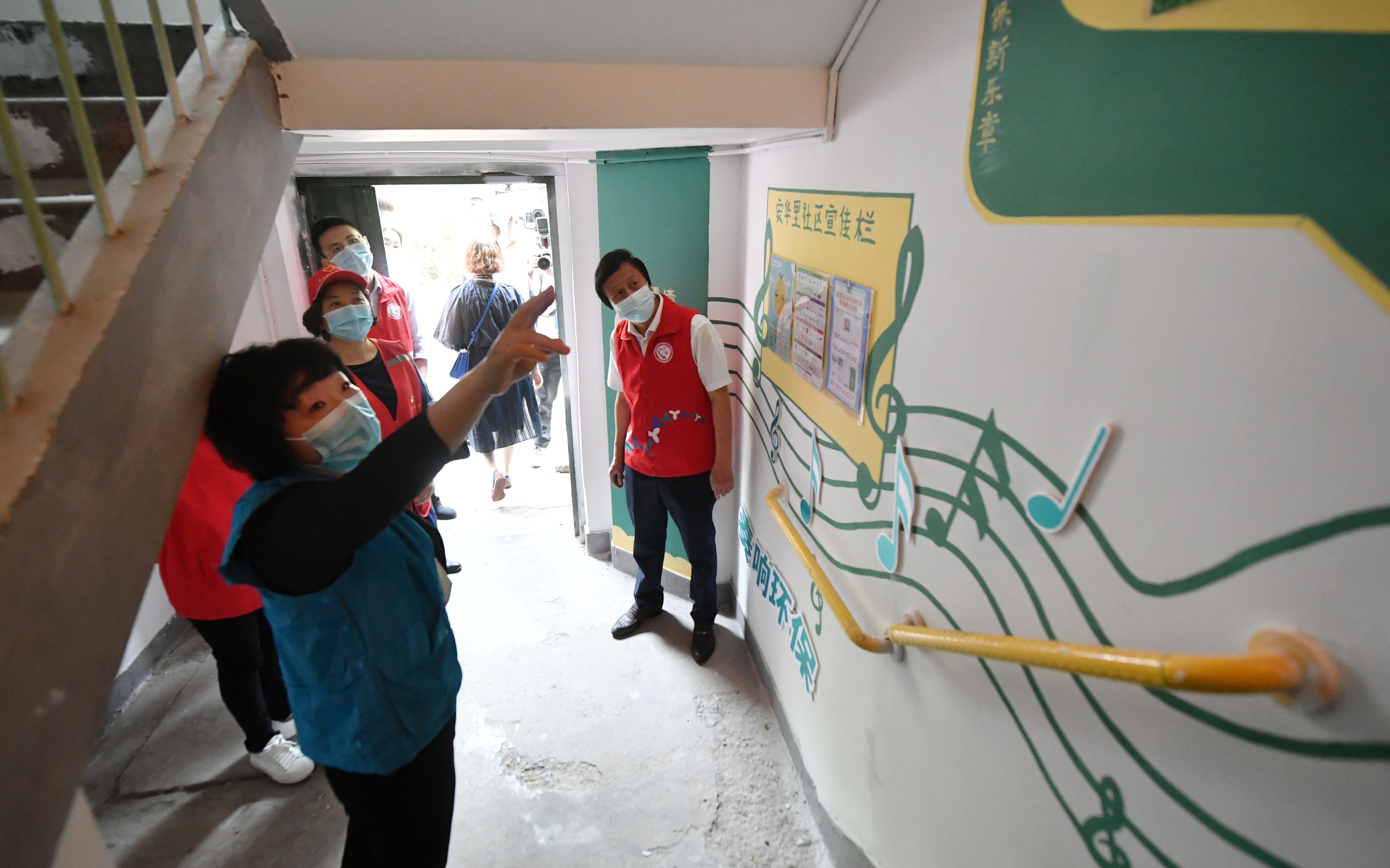 以安华里二区8、9号楼的4个楼门为试点,启动“贞美楼门安华行”。新京报记者 王贵彬 摄