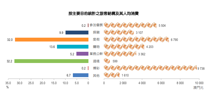 澳门一季度旅客人均消费3556澳门元,较去年同期增长1.3倍