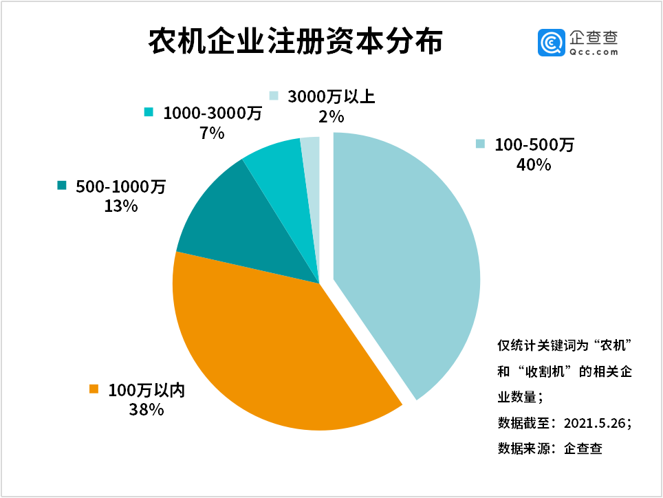 从注册资本来看,企查查数据显示,注册资本在100万-500万元的占比达40%,注册资本在100万元以内和500万-1000万元的分别占38%和13%。