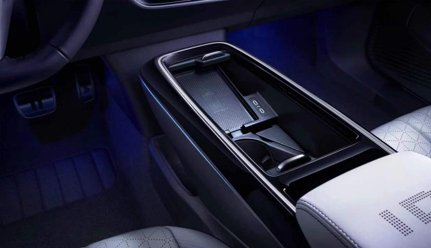 全家出行当然免不了带上各式各样的小物件,在储物空间方面,ID.6 X也早已考虑周到。受益于电动车的天然优势,ID.6 X采用了前置电子挡扭,前排中央通道区域节省出大量空间。基于本土市场喜好,上汽大众对该区域进行了创新规划,增加诸多舒心便捷的设计。比如,ID.6 X采用对开式卷帘设计,前后区域可分别开关,整洁美观,呈现多功能的隐藏空间布局;大进深的储物格加上三爪式杯托,大瓶饮料都能安放。倾斜的平台带防滑胶粒,支持手机无线充电功能。有线充电时的电线也可隐藏在三角盖板下,令“整理控”也能安心使用。来到后排,带防滑胶粒的储物格、中央通道尾部出风口、两个Type-C接口等,功能很完备。