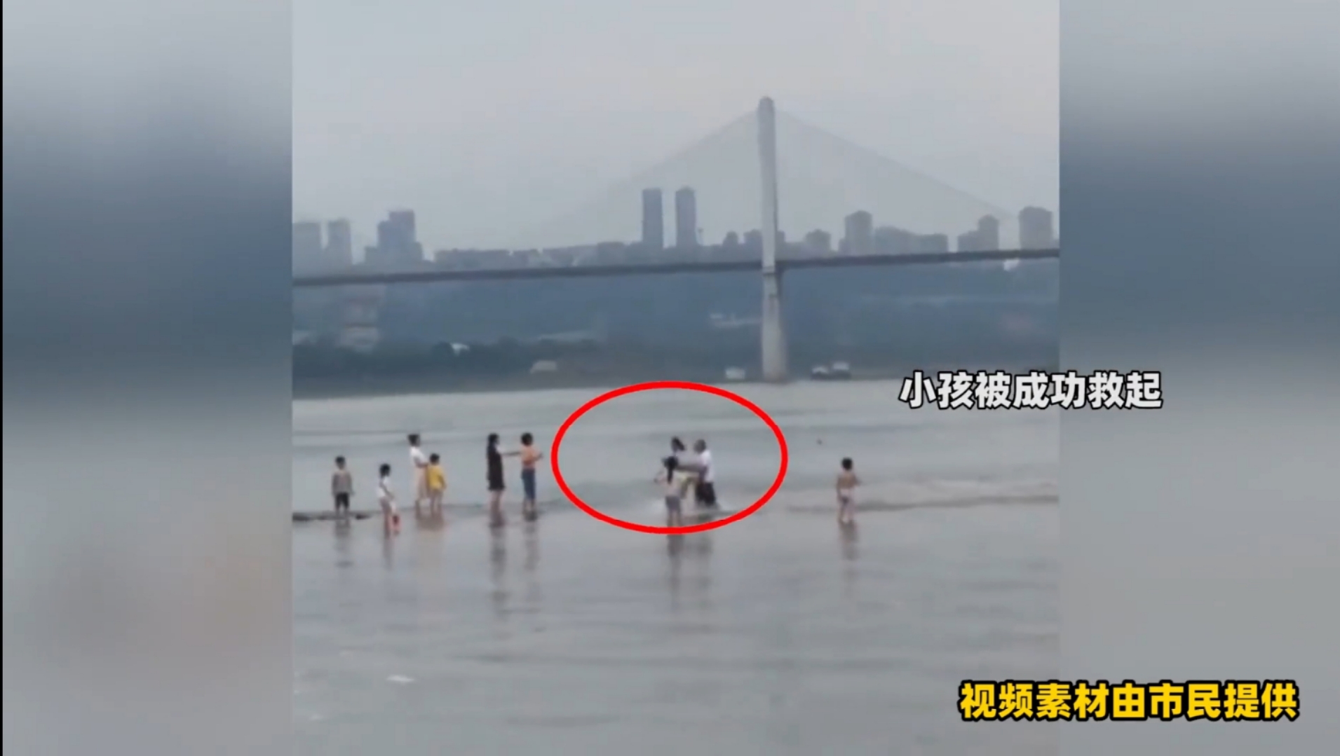 市民拍摄的视频显示,救援展开后,众人手拉手站成一排,一直延伸到孩子的落水点。最靠近落水点的就是王红旭。在王红旭把第二个落水儿童交给二传手的最后一刻,他就被江水冲走了。