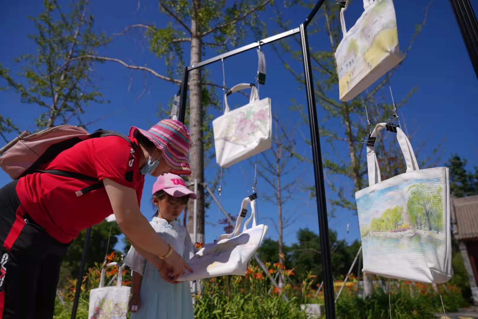 活动现场展出的环保布袋。新京报记者 李木易 摄