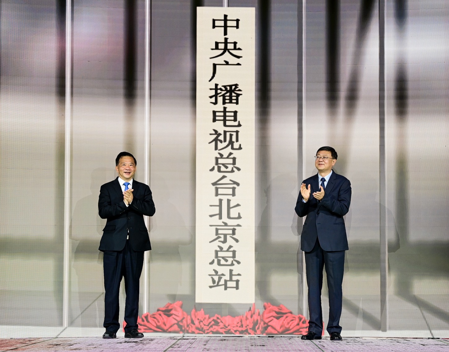 中宣部副部长、中央广播电视总台台长兼总编辑慎海雄,北京市委副书记、市长陈吉宁通过“AI+VR裸眼3D演播室技术”,共同为北京总站揭牌。北京市委常委、宣传部部长莫高义,中央广播电视总台副台长蒋希伟等也利用这一最新技术为北京总站新办公楼揭幕。