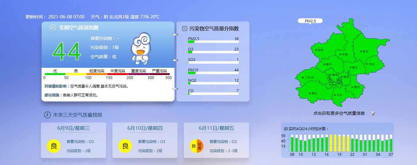 据北京市生态环境监测中心今早7时数据,目前实时空气质量指数为44,空气质量为优。