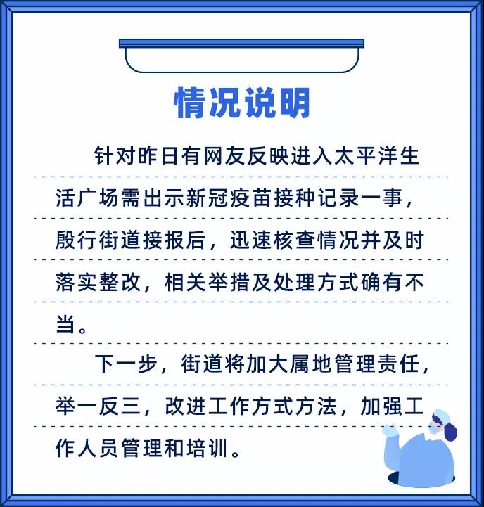 网传进入上海一商场需出示新冠疫苗接种记录,街道办事处回应