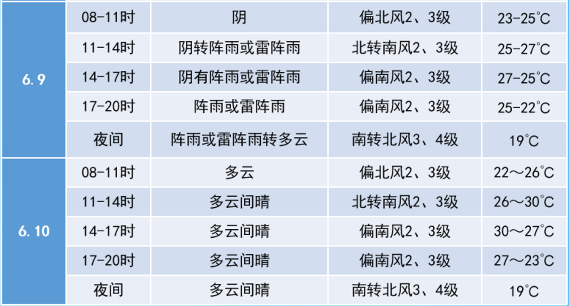 今天白天阴转雷阵雨,北风二三间四级,最高气温27℃;夜间雷阵雨,北风三四级(阵风六级左右),最低气温19℃。