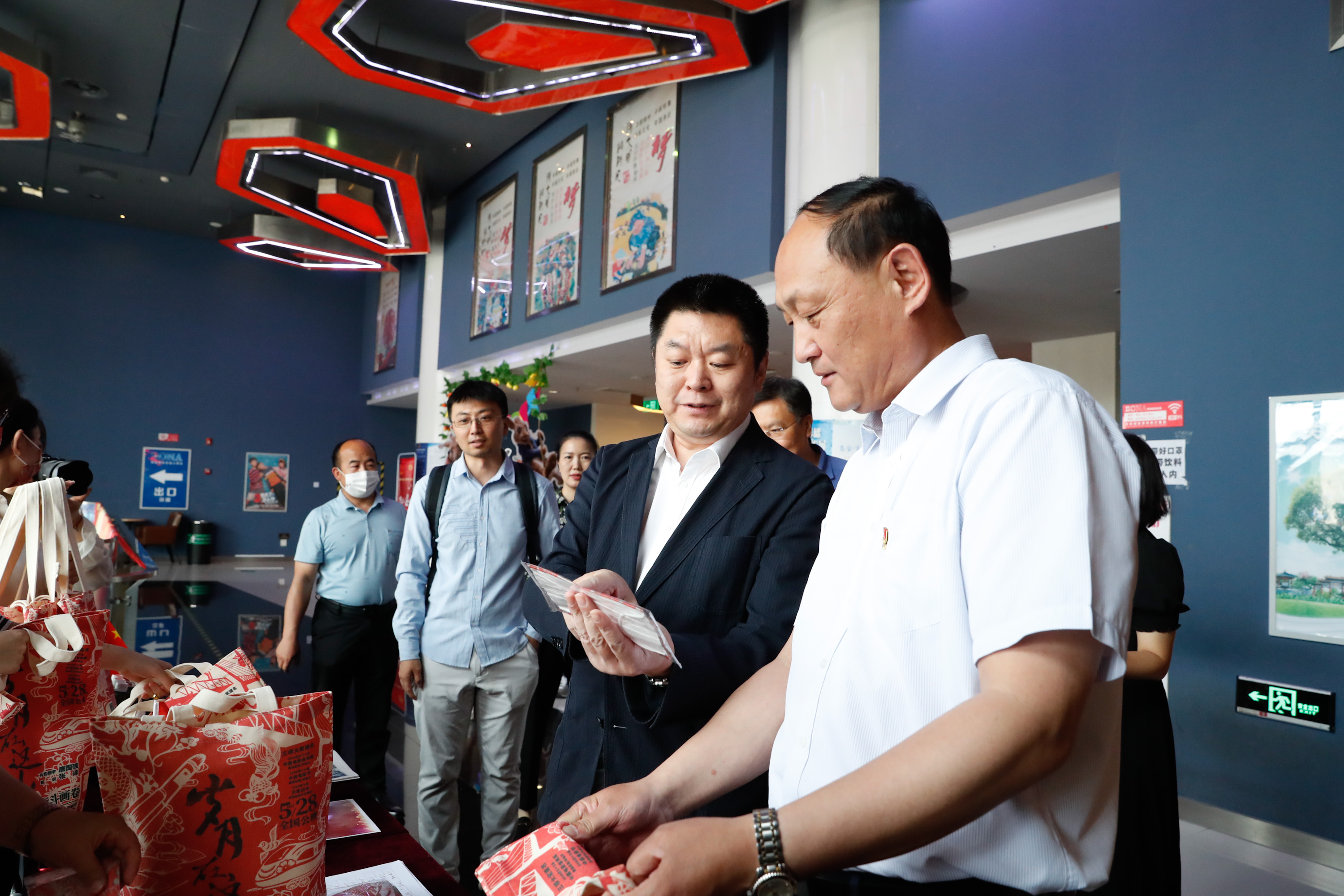6月11日,新京报社党委书记、社长刘军胜和蒙牛乳业党委书记、执行董事孟凡杰在观影现场。