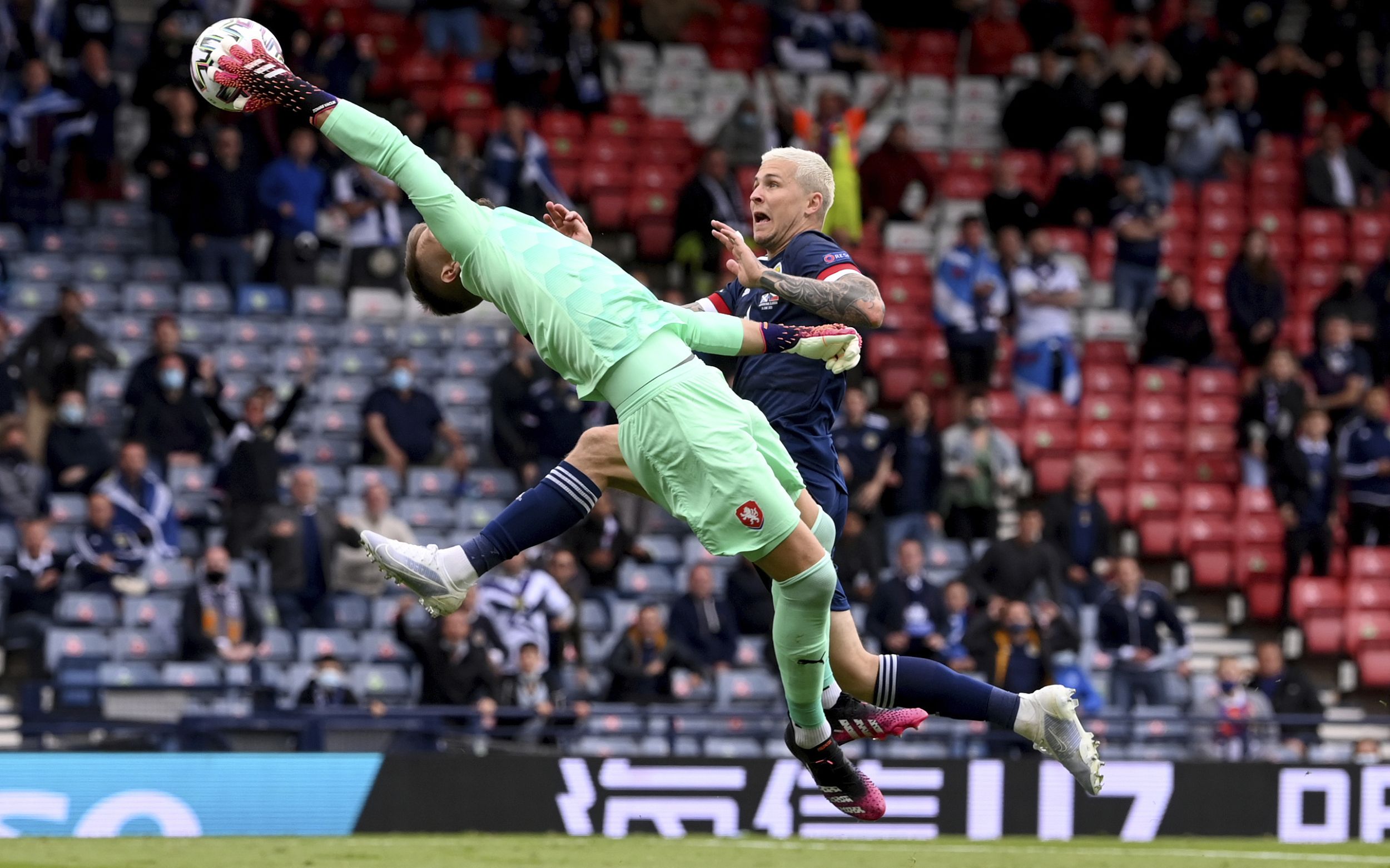 捷克门将上演极限扑救。