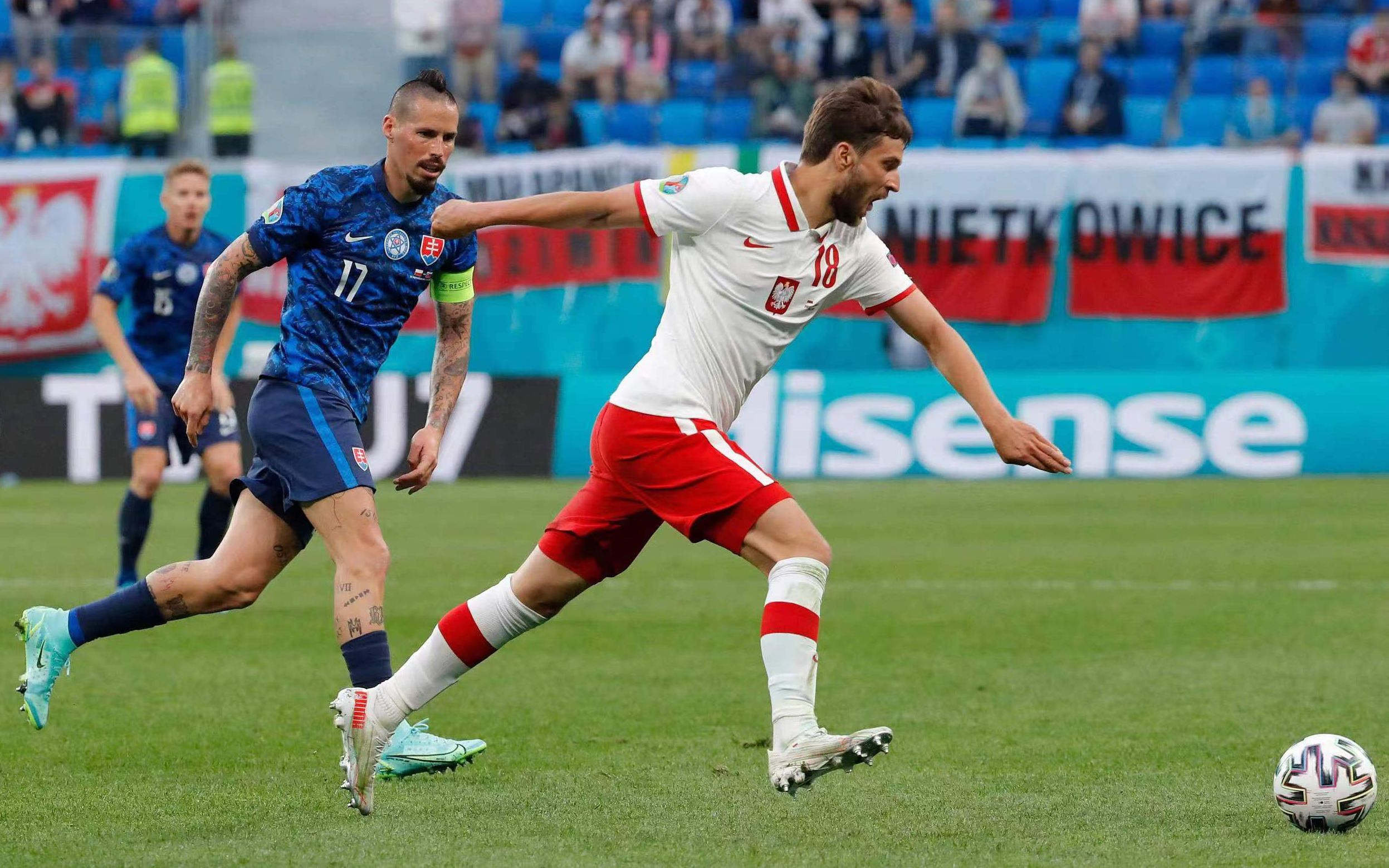 这场比赛出现了本次欧洲杯的第一张红牌,波兰的克里乔维亚克累计两张黄牌被罚下。上半场,波兰门将什琴斯尼自摆乌龙。下半场开始不久,利内蒂为波兰扳平比分。第69分钟,什克里尼亚尔的进球帮助斯洛伐克取胜。