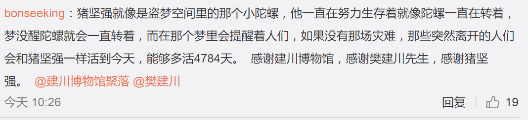 也有网友留言,表示猪坚强更是汶川地震的见证者↓↓↓