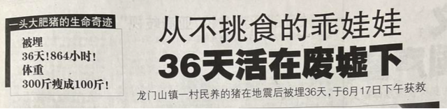“猪坚强”原是四川彭州龙门山镇团山村农民万兴明饲养的一只家猪,汶川大地震时被埋在废墟下,36天后被救出,创造生命奇迹,被称为“猪坚强”。