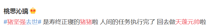 网友悼念猪坚强:人间的任务完成了 ,回去做天蓬元帅啦