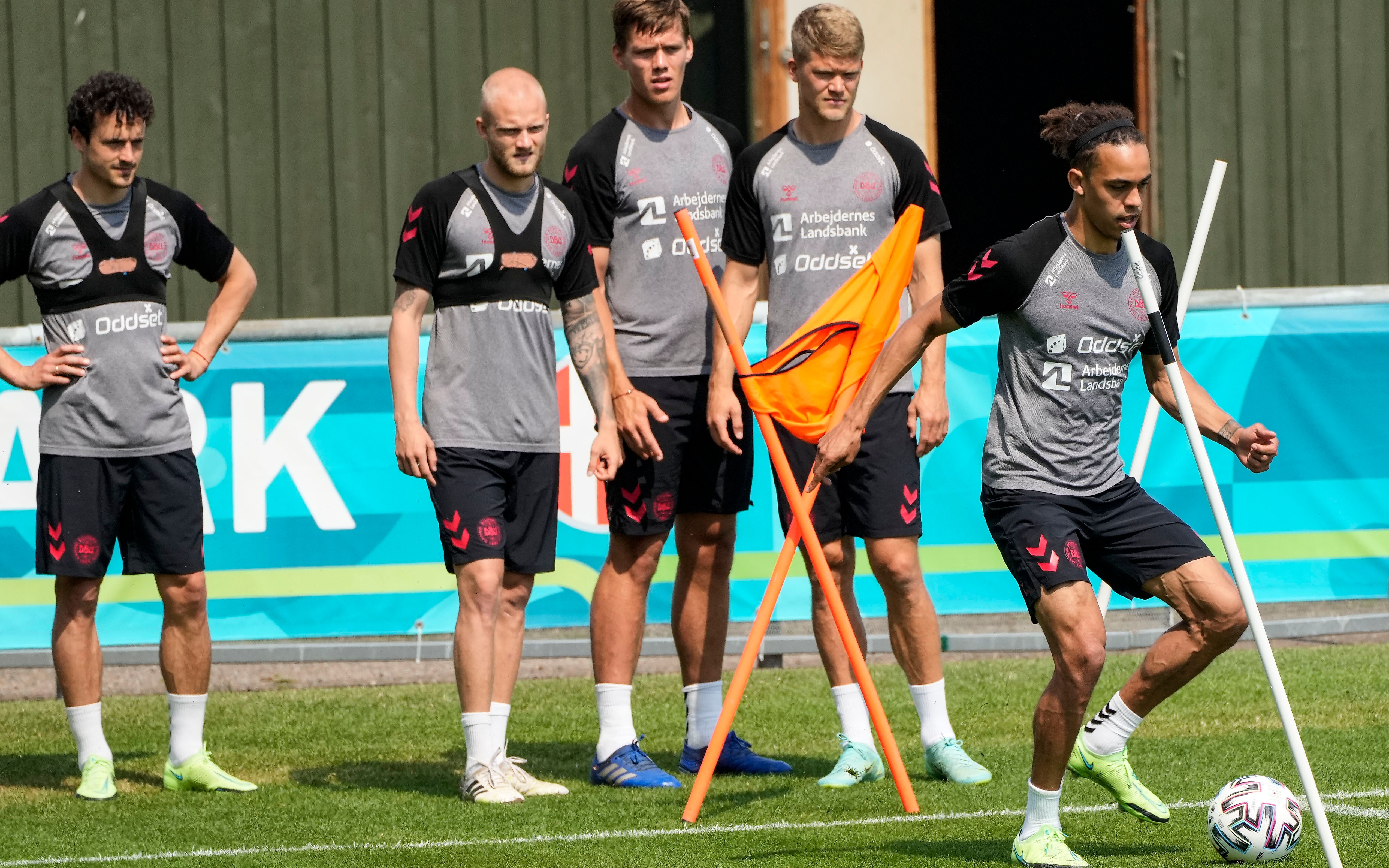 丹麦队赛前训练,众将为队友埃里克森而战。图/IC PHOTO
