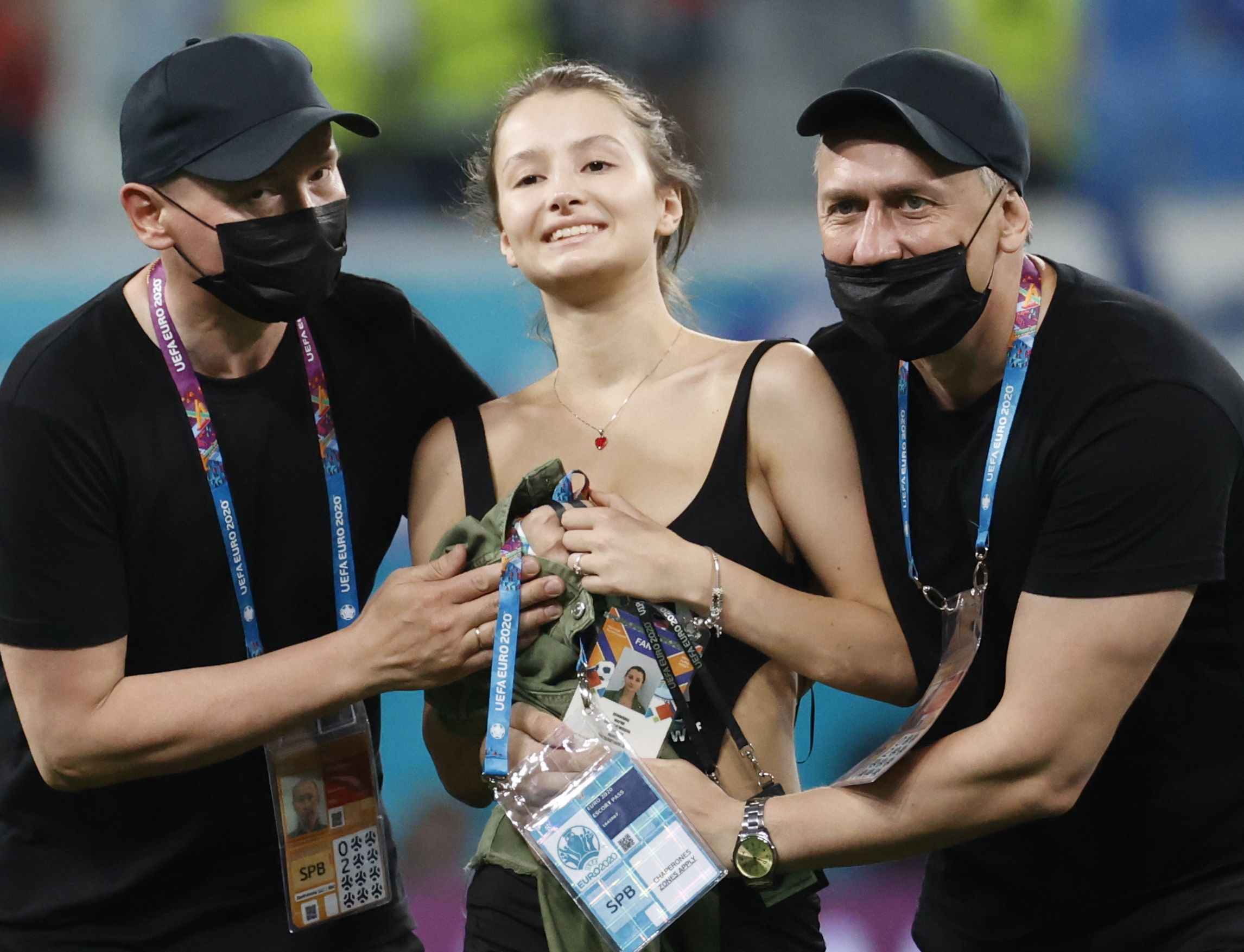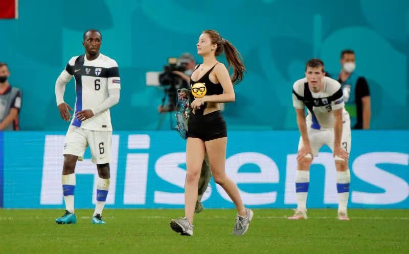 芬兰VS比利时,比赛中一名球迷冲入场内。图/IC photo