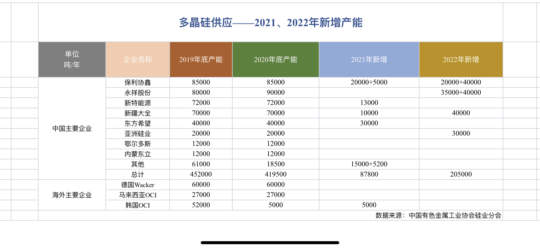 然而,记者注意到,正当硅料企业蛰伏数年,预备收割红利之际,硅料行业新一轮产能将在2022年集中释放,届时,硅料行业或走进新一轮“下降周期”。
