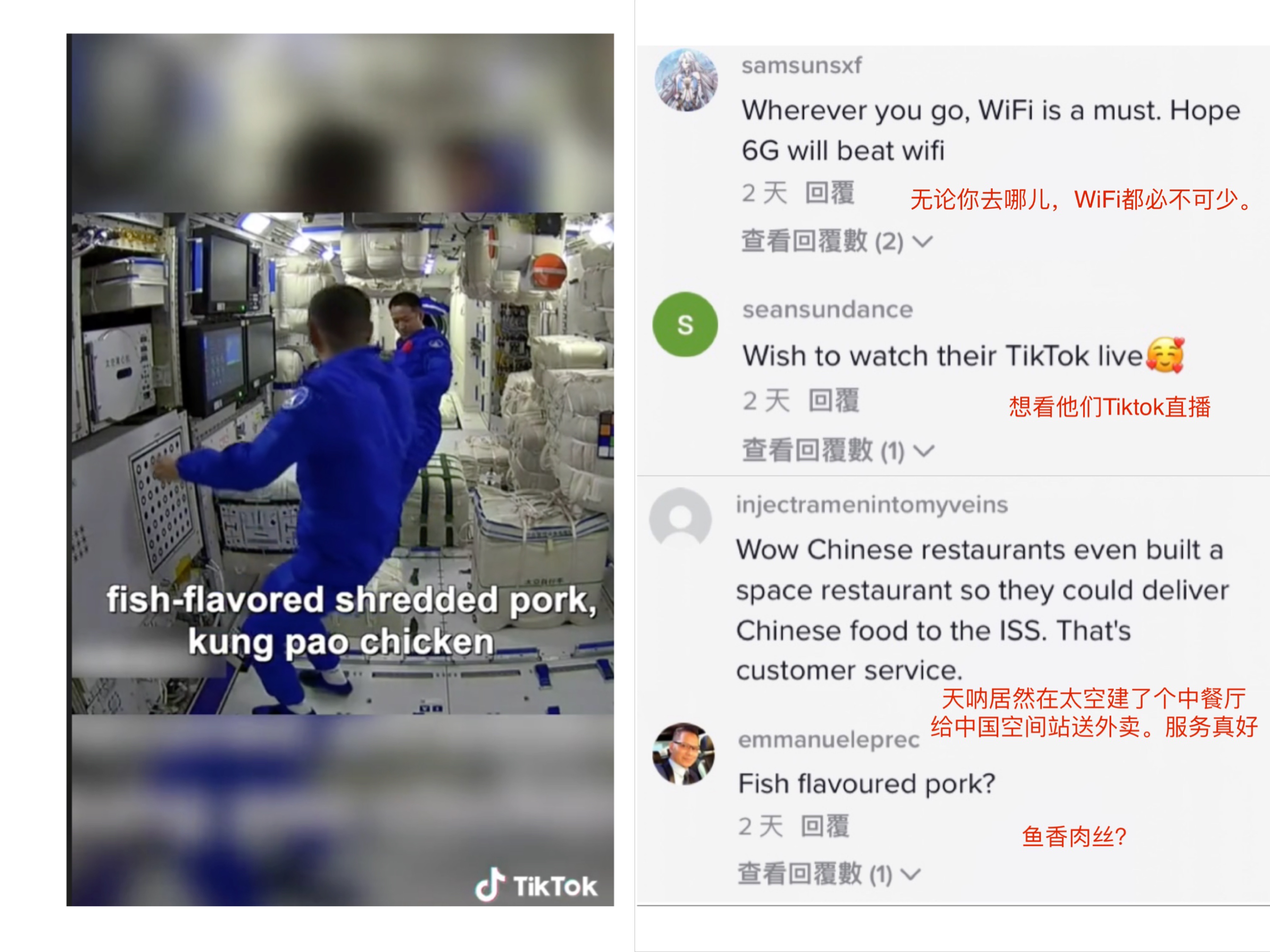 “航天员可以给我们来一场TikTok直播吗?”