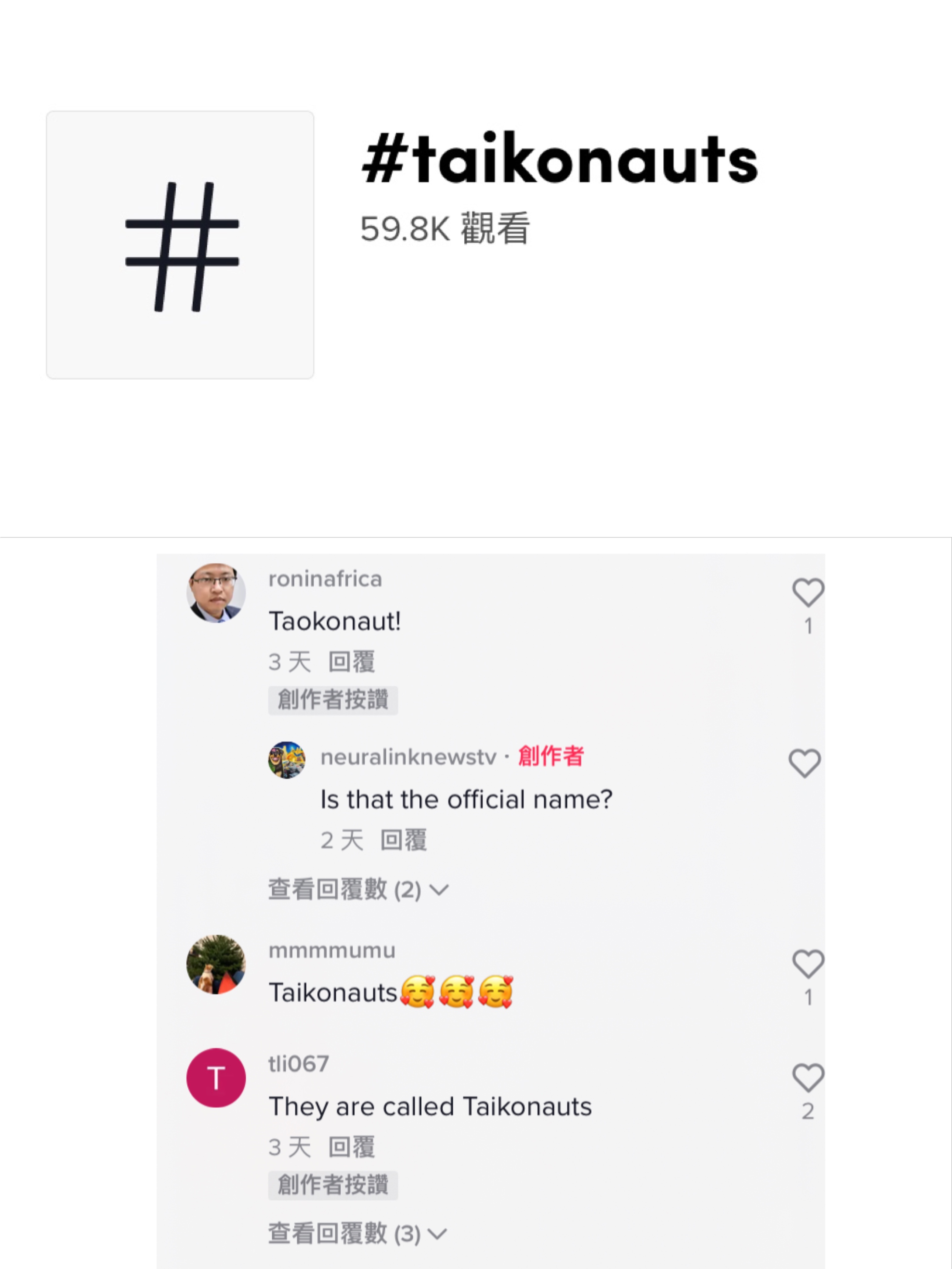航天餐馋倒一片网友,英文单词“taikonauts”也引发热议。网友@roninafrica、@mmmmumu、@tli067等告诉大家,中国是世界上仅有的三个独立载人航天国家之一,中国航天员拥有专属英文名词“taikonauts”,以区分美国航天员“astronauts”和俄罗斯航天员“cosmonauts”。事实上,见多识广的TikTokers早已用“taikonauts”形容中国航天员。目前,TikTok上“taikonauts”词条阅读量已近6万。