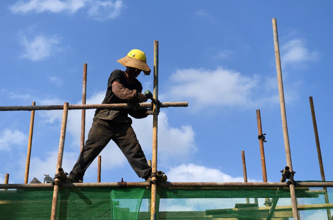 ▲6月18日,在广西南宁某工程建设现场,工人冒着高温施工。当日,广西发布高温蓝色预警,局部地区最高气温达38℃以上。新华社记者 陆波岸 摄影