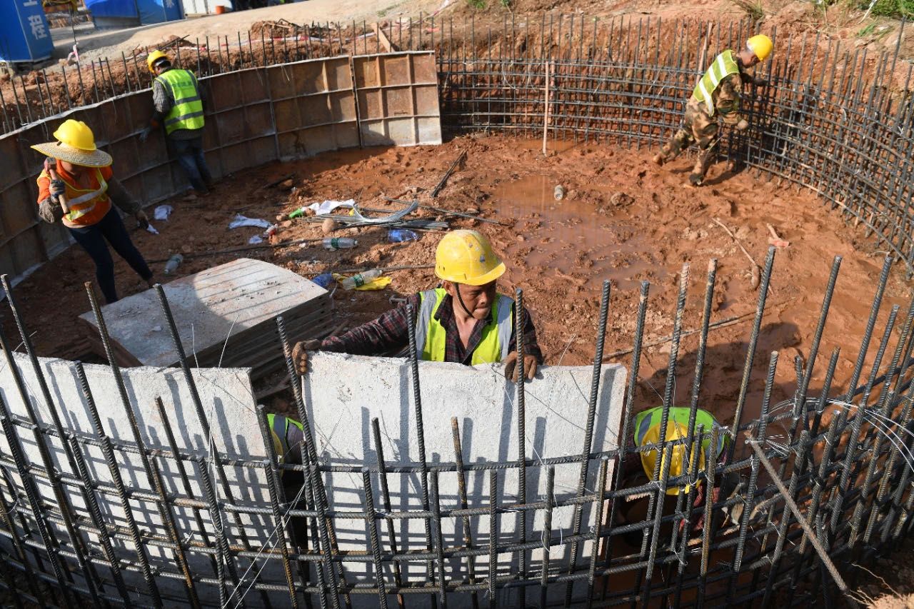 ▲6月18日,在广西南宁某工程建设现场,工人冒着高温施工。新华社记者 陆波岸 摄影