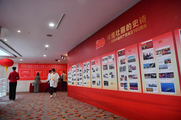 新闻中心设立的“辉煌壮丽的史诗”图片展。