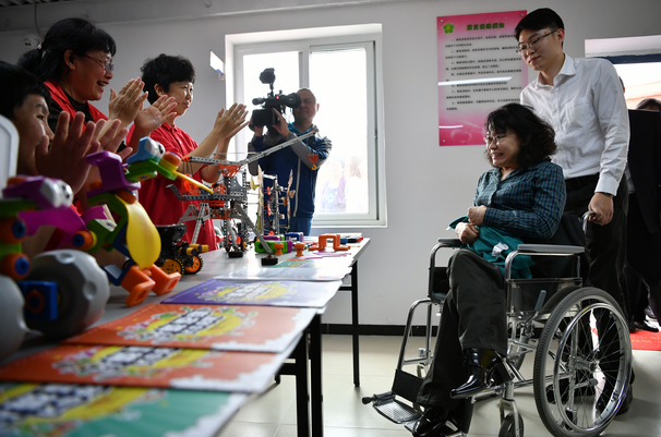 ▲2019年全国助残日当天,中国残联主席张海迪来到北京通州区中仓街道“温馨家园”探望残疾人。图片来源:新京报网