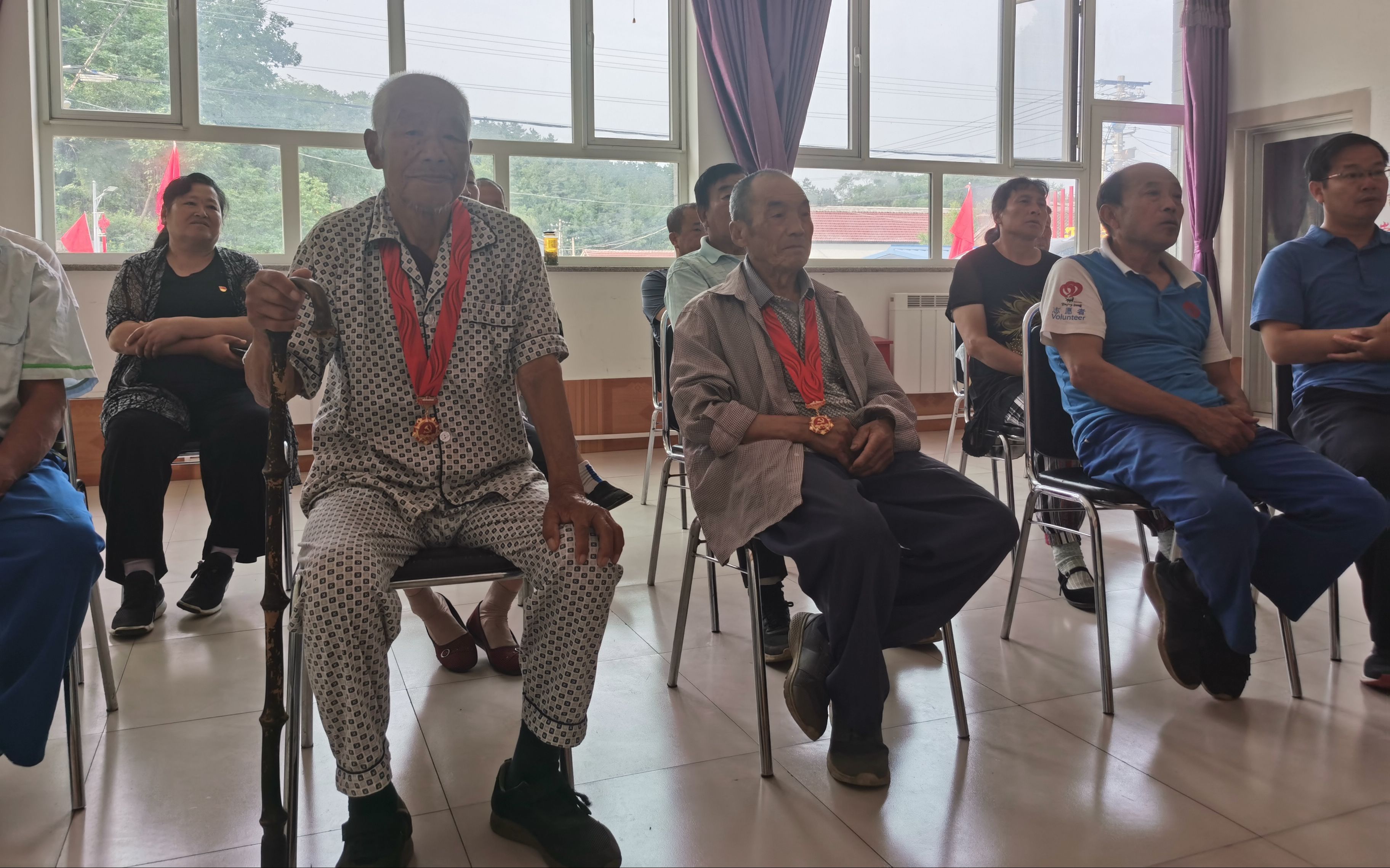 一位白发稀疏、身材佝偻的老者,在霹破石村党支部书记杨忠云的搀扶下进入活动室。杨忠云介绍,王仕啟已经86岁了,坚持来村委会参加直播观看活动。“另外,有52年党龄的王仕合,也参加了这次活动。老党员的这种精神与情怀,很令人钦佩。”