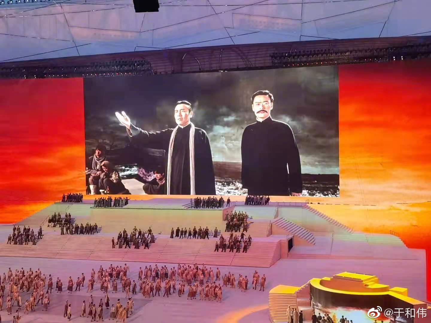 于和伟感叹,“人生第一次参加如此盛大的文化活动!《破晓》打头阵!百年盛典,与有荣焉!也是行业内难得的一次大聚会!幸会、幸福、感慨、感动!”他透露,分别的时候一位兄弟(这里没有明星我们更愿意称彼此为兄弟)说:“哥,下次这样的聚会再有可能的话也是建国百年了!”我说。“兄弟,那个时候我们若能相聚的话我快80了,你年轻要照顾我,万一我假牙掉地上了你帮我捡起来,记得用水冲冲再给我!”