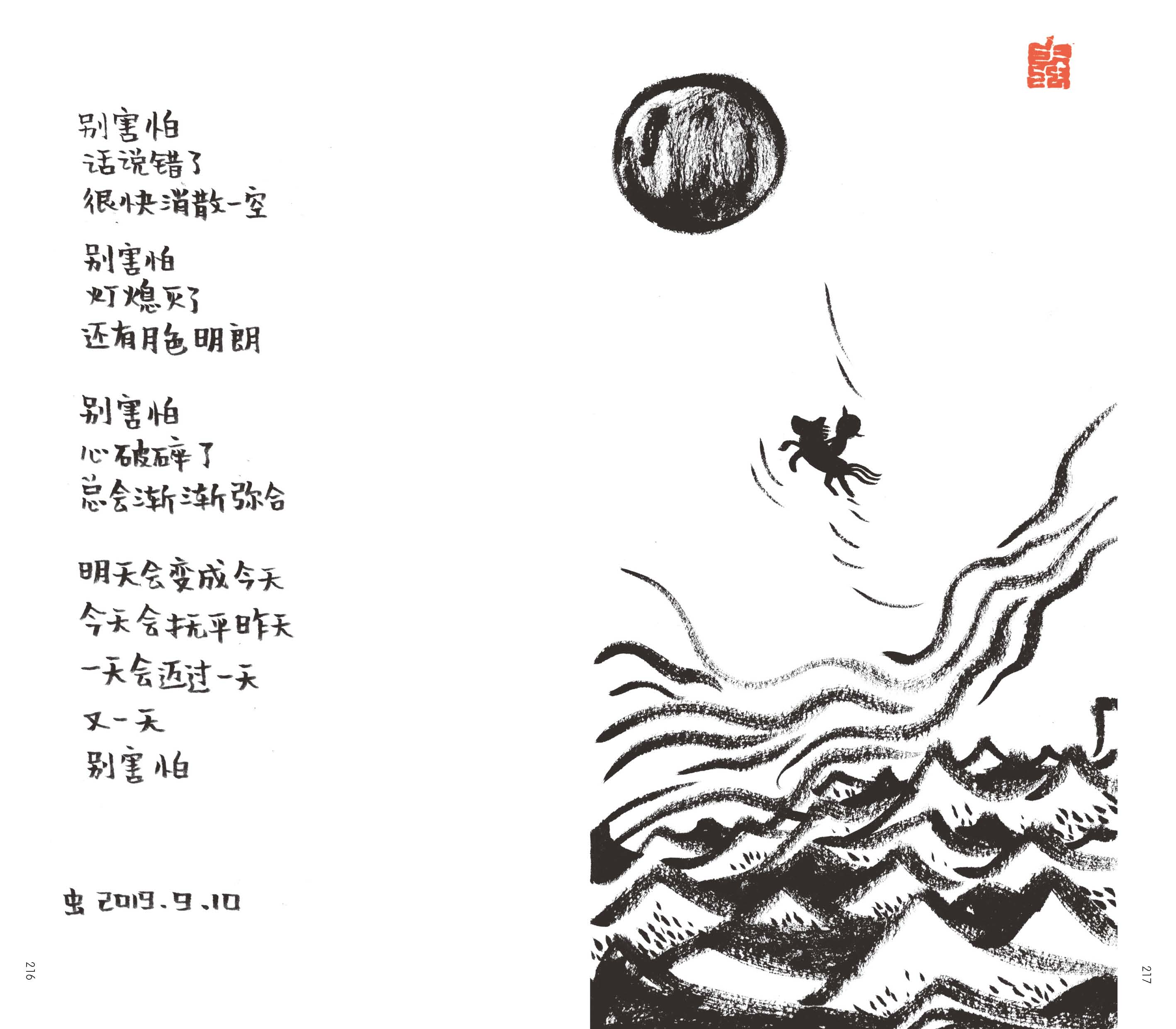 有一天,虫虫的孩子告诉她:“妈妈,把你困在心里面的话说出来吧。……就是有些话你想说,但是没有说,它就被困住了。你把它说出来,就是救了它。”