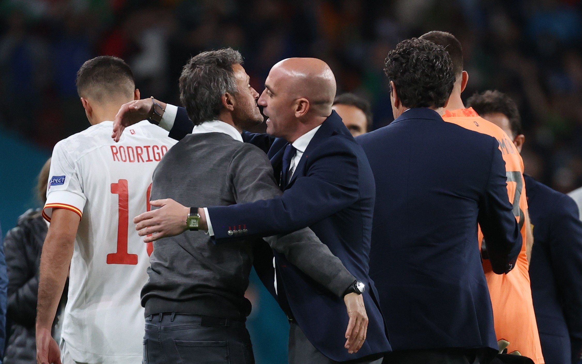 西班牙足协主席赛后安慰恩里克。图/IC PHOTO