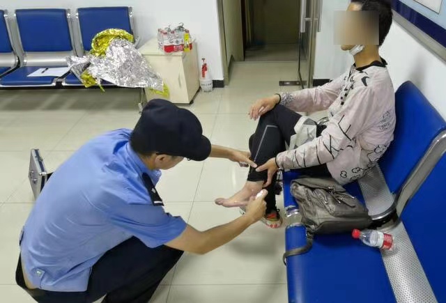 救援过程中天上开始下雨,影响了下山的速度,又经过2个多小时,救援队终于将被困群众安全带回到山下的凤凰岭派出所,并在派出所内为事主的受伤部位进行了简单处理。