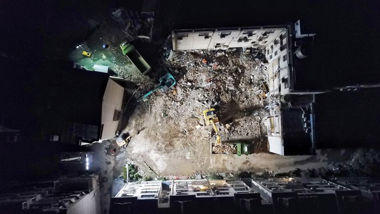 吴江塌楼事故现场灯火通明:现在仍是黄金救援期!