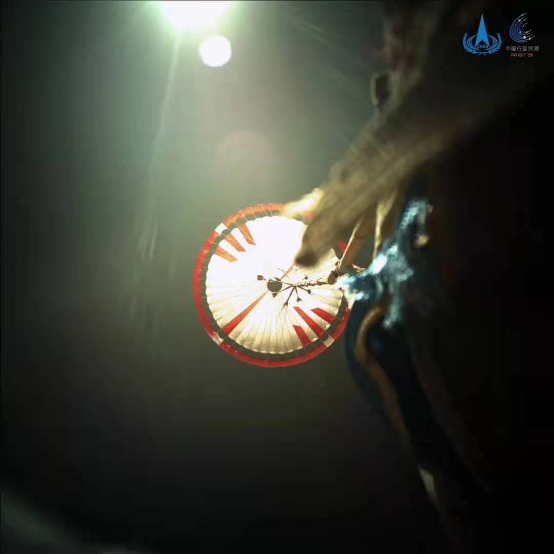 国家航天局发布最新火星影像:祝融号近距离“看”降落伞与背罩