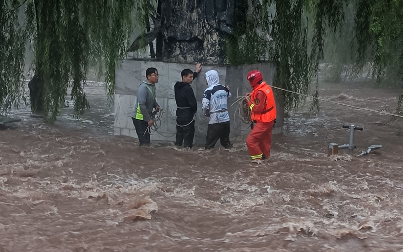 救援人员到场后了解到,3名被困男子均为附近村民,凌晨外出后不慎遇到山洪突发,河水暴涨后水流湍急。3人被困处原本是一个停车场,但洪水将陆地淹没,他们抱着旁边一棵大柳树无法脱身,当时已经体力不支。