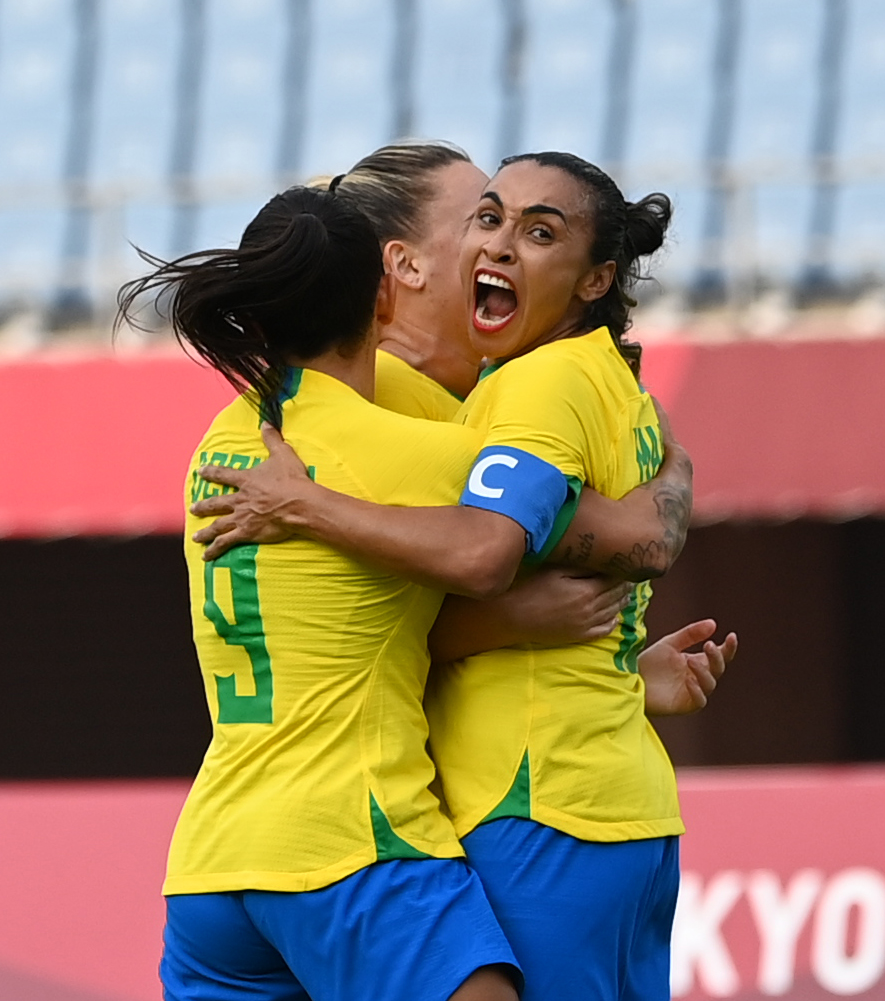 贾秀全期望队员们能在比赛中“快速找到切入点,快速进入状态”,但在奥运赛场上,年轻的中国女足显得有些紧张,开场8分钟,比娅特里斯在中国队后场抢断得手,并迅速发动攻势,尽管德比尼亚的头球被横梁挡出,但第5次参加奥运会的35岁老将玛塔补射得手,打破僵局的同时,也收获了个人奥运会的第11球。第21分钟,中国女足防线再次出现纰漏,彭诗梦扑球脱手,德比尼亚跟进补射进球,将比分扩大为2比0。