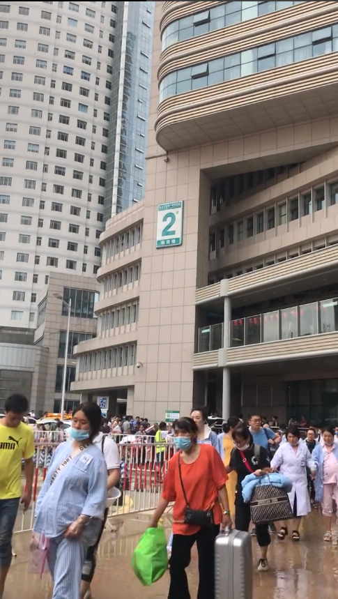 陈芳说,21日早,她离开医院时,外面的积水已经被抽得差不多了,工作人员已经在对门诊楼内的人进行疏散。