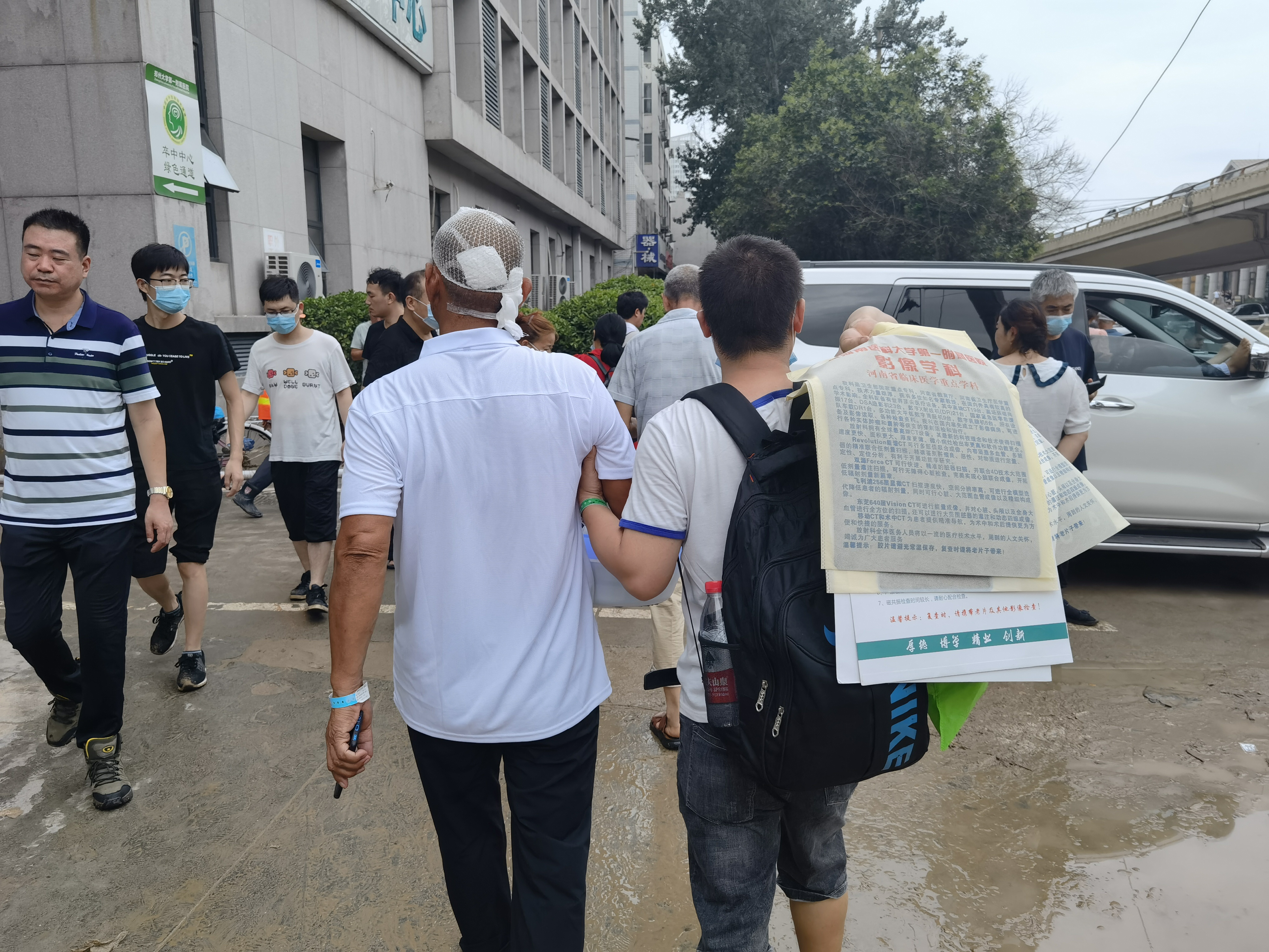 7月21日下午,郑大一附院,有孕妇穿着病号服撤离。受访者供图