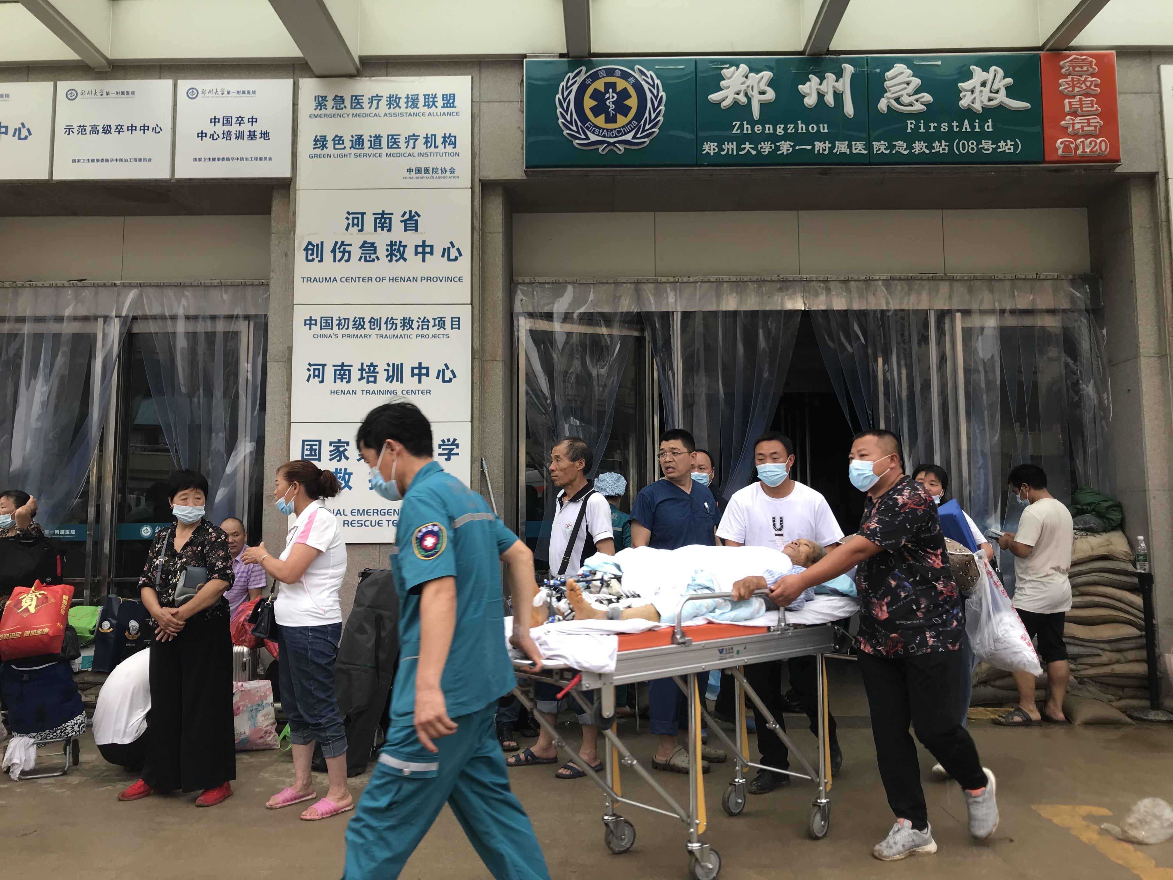 7月21日下午,郑大一附院河医院区住院楼一楼,等待被转运的病人。新京报记者 程亚龙 摄