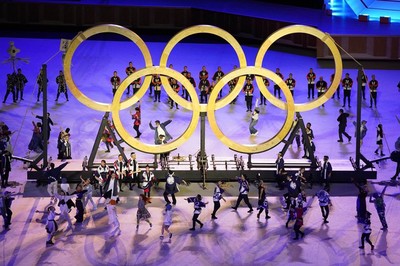 东京奥运会木制奥运五环亮相