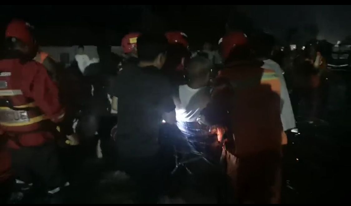 7月23日晚间,救援人员将一位老人抬到船上后转移到安全地带。受访者供图
