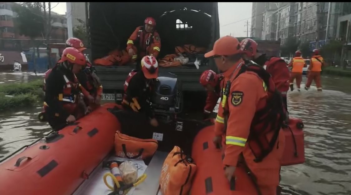 23日下午4点,北京消防救援总队特勤支队已和当地消防部门一起,携带14舟艇、8车、88人,利用消防越野车跨越城市内涝区域,前往卫辉市转移被困群众。