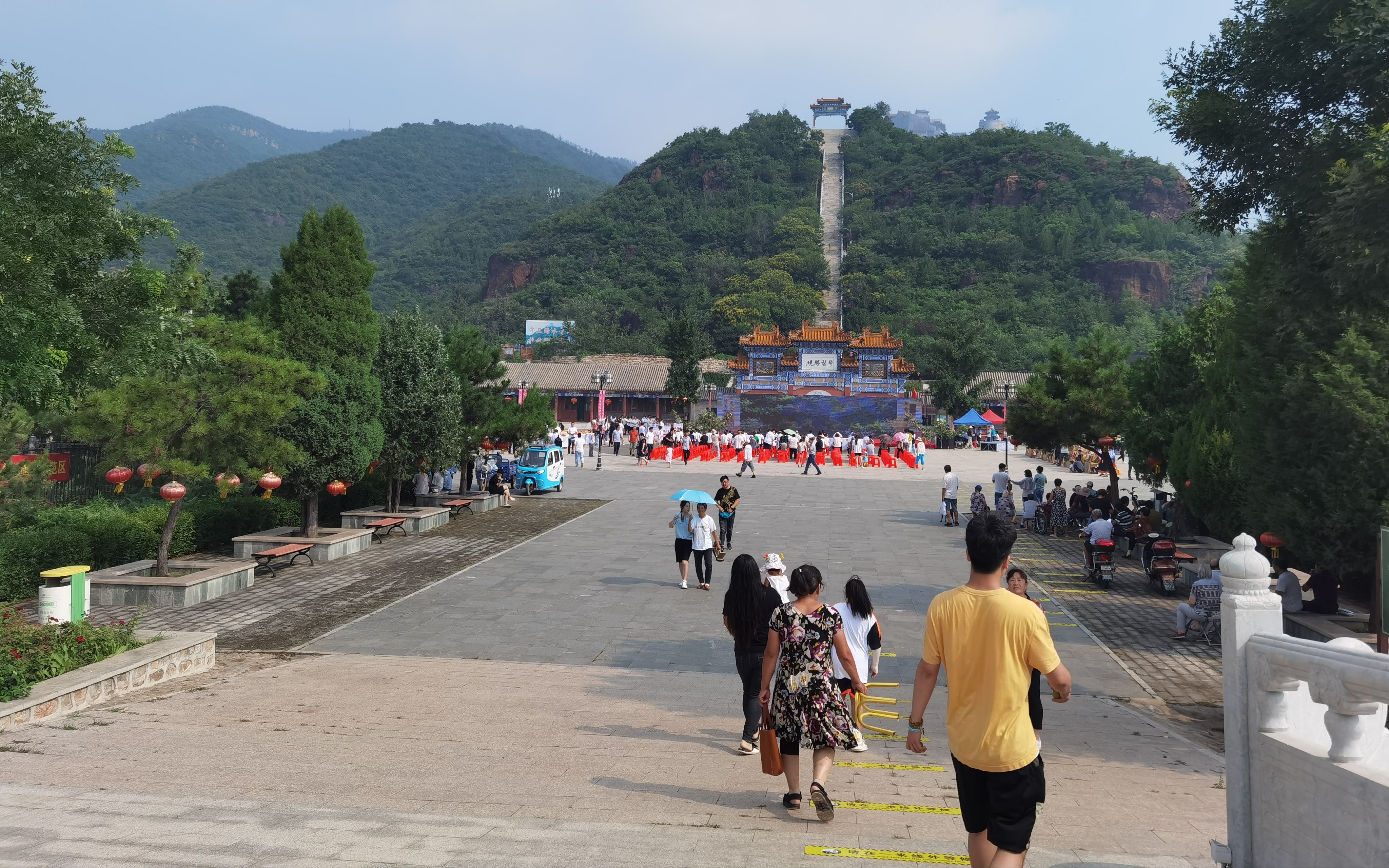 丫髻山太极广场,游客来参加“蟠桃会”。新京报记者 曹晶瑞 摄