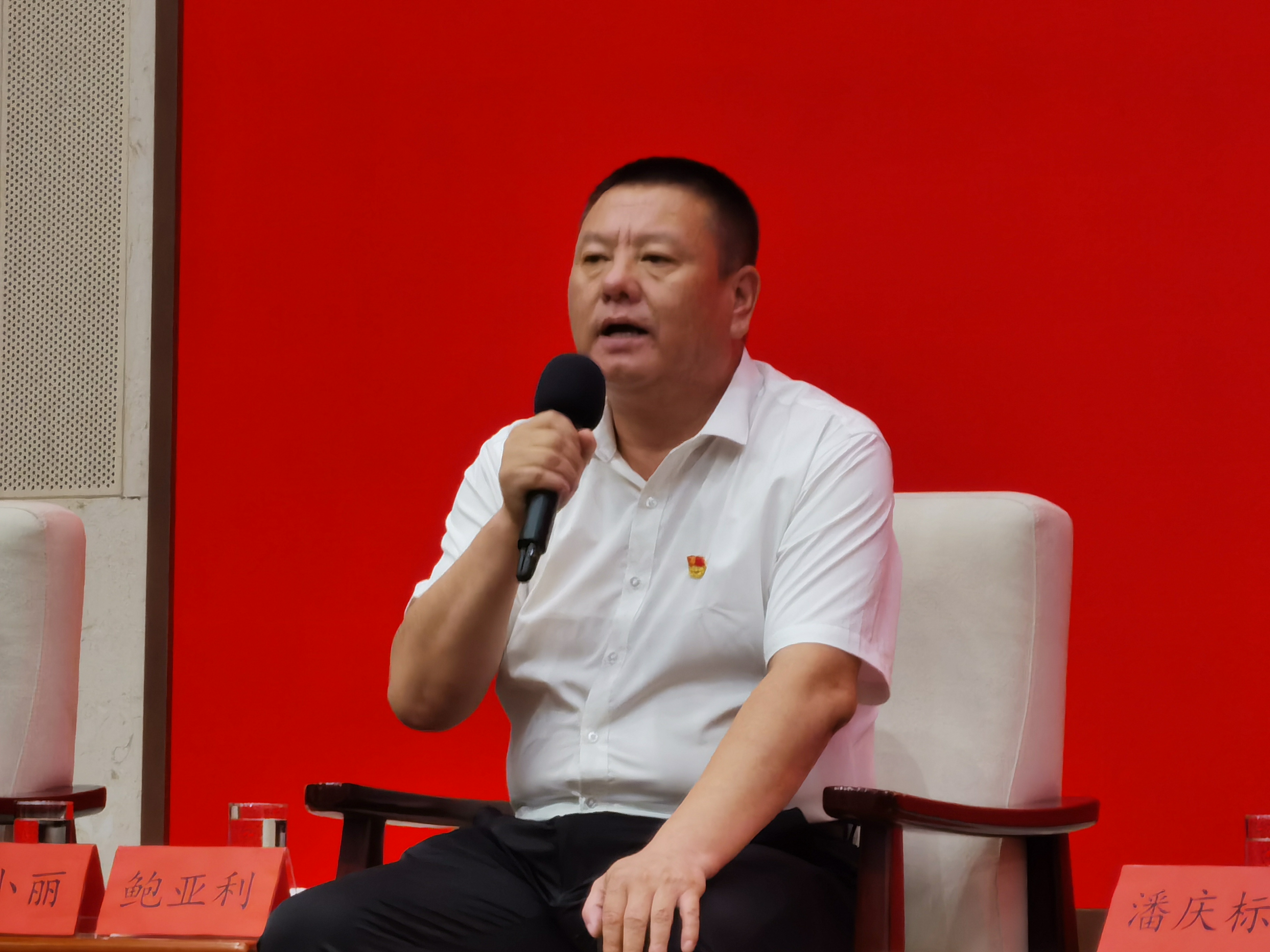 7月27日,潘庆标在见面会上发言。新京报记者 陈琳 摄