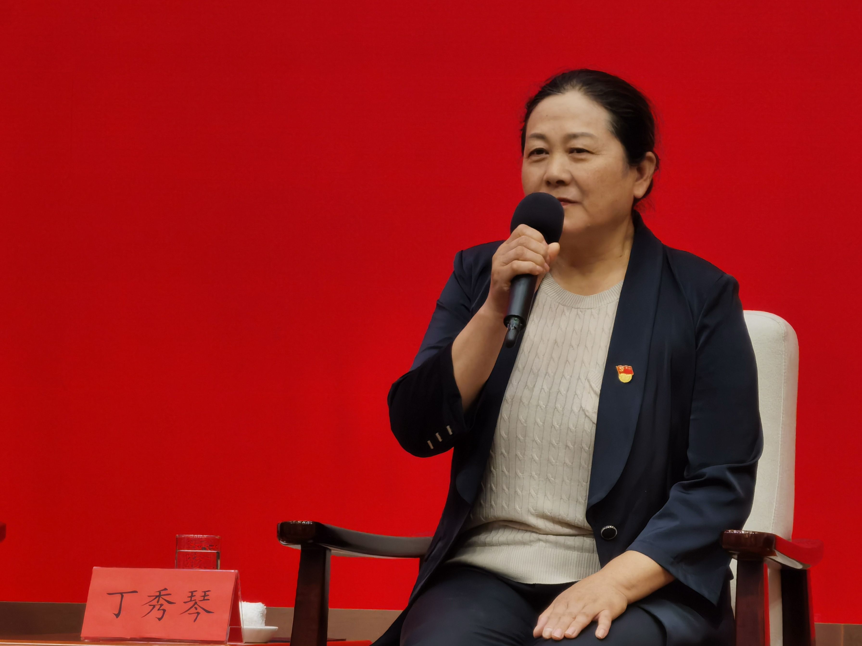 7月27日,丁秀琴在见面会上发言。新京报记者 陈琳 摄