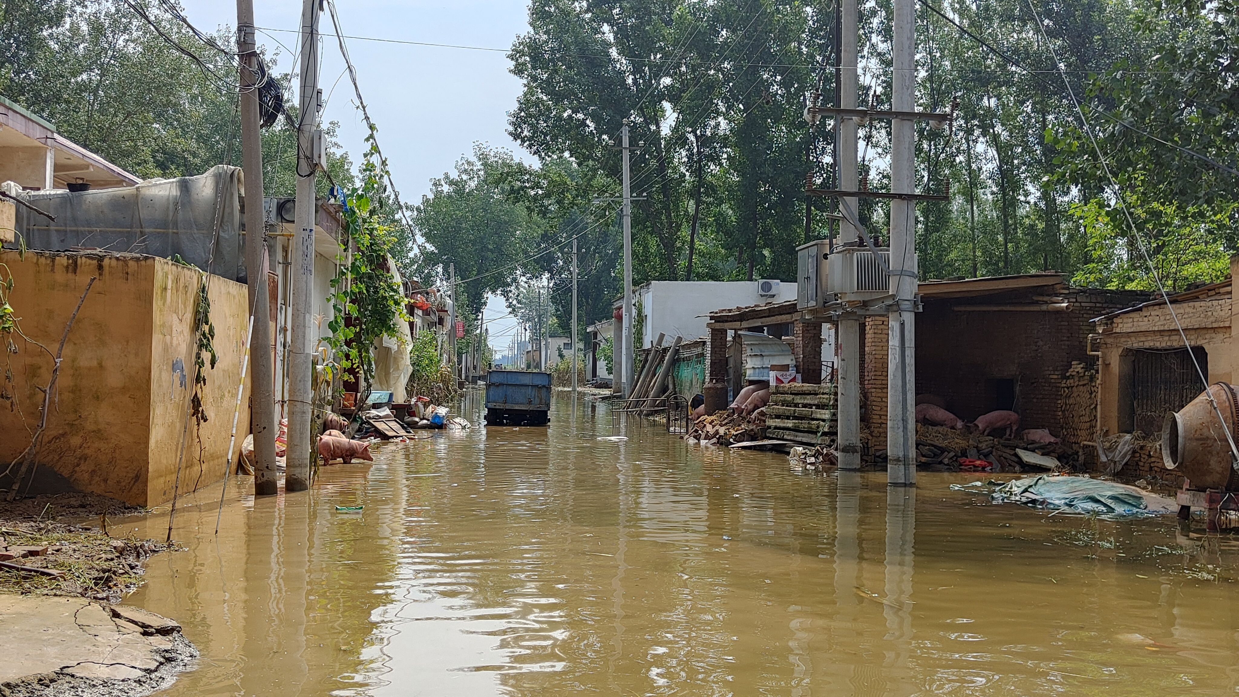 7月27日,淇县西岗镇原庄村,村内有部分积水尚未退去。新京报记者 刘瑞明 摄