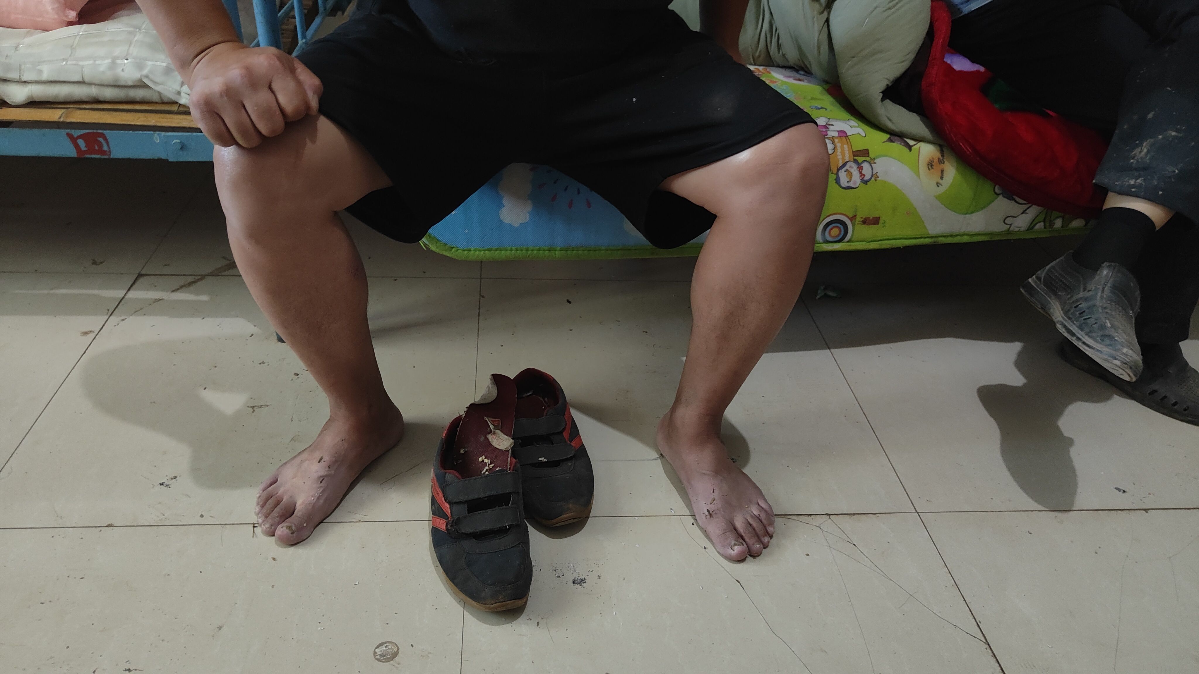 他赶紧拿出编织袋和洗衣服的大水盆,把剩下的麦子装进去,一一扛进堂屋,干了几个小时,装了十几袋麦子。回到安置点时已是下午四五点,全身衣服被汗水浸透,双脚被拖鞋鞋帮覆盖的部分是泡肿了的白色,其余位置和大腿上已全部被晒黑。