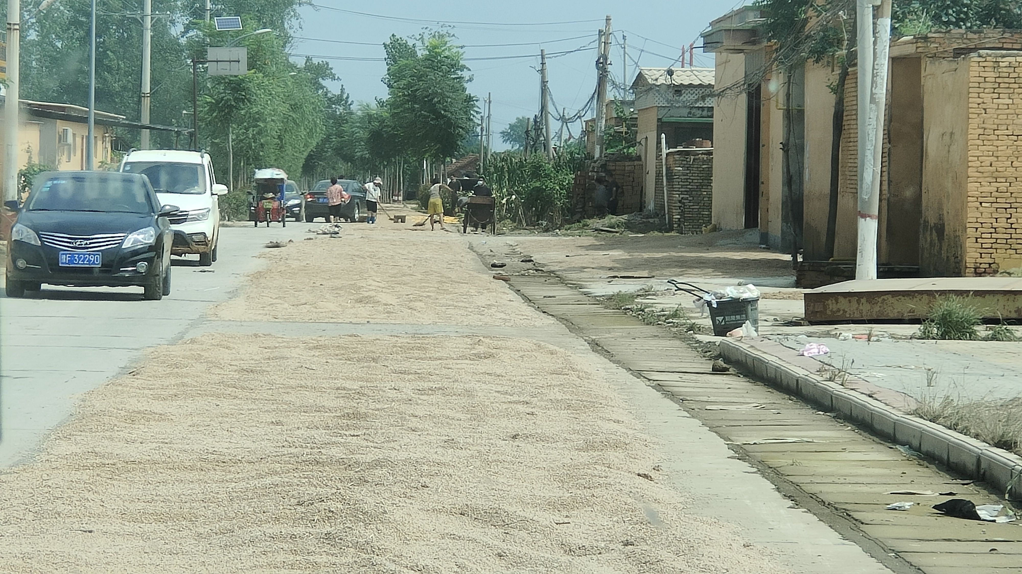 7月27日,淇县西岗镇刘拐庄村,村民把家里未浸水的麦子铺在路面上晾晒。新京报记者 刘瑞明 摄