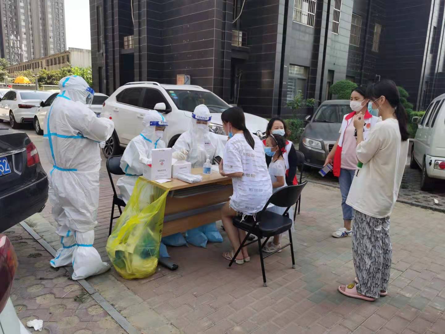 “我妹妹是上午最后一个接受核酸检测的人员,本来她准备叫我们下去检测,但是医护人员中暑差点晕倒。下午3点多医护人员继续给我们做核酸检测。”据于先生介绍,郑州今天的温度超过了37摄氏度。