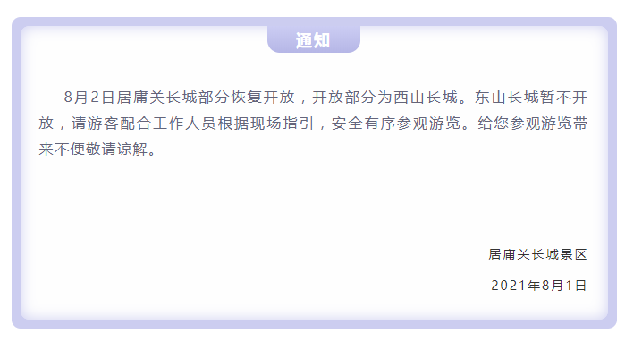 居庸关长城今日部分恢复开放,开放部分为西山长城
