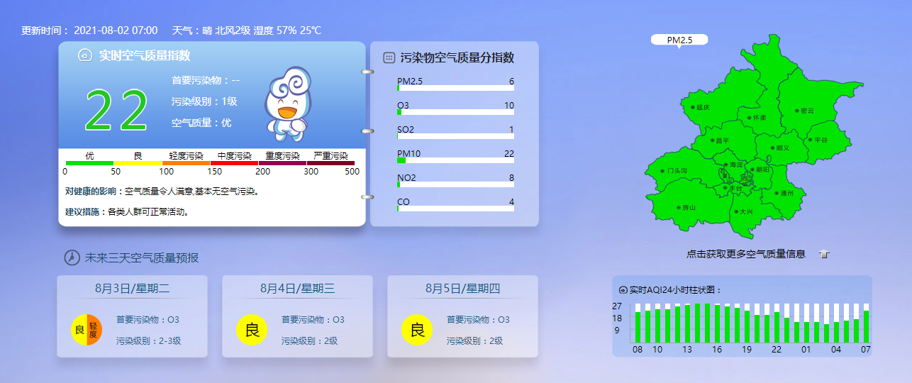 据北京市生态环境监测中心今早7时数据,目前实时空气质量指数为22,空气质量为优。